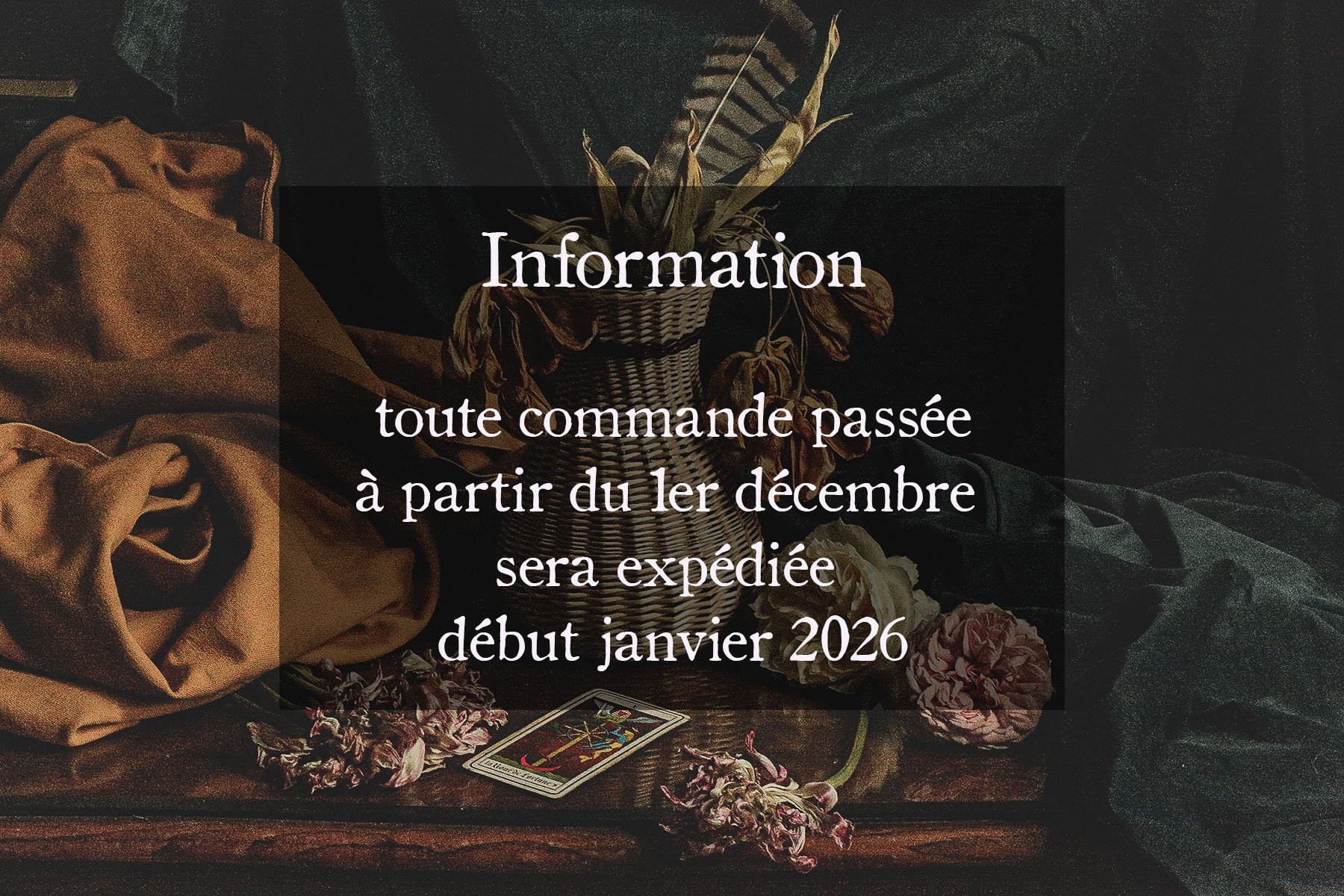 Toute commande passée courant décembre sera expédiée première semaine de janvier 2026 !